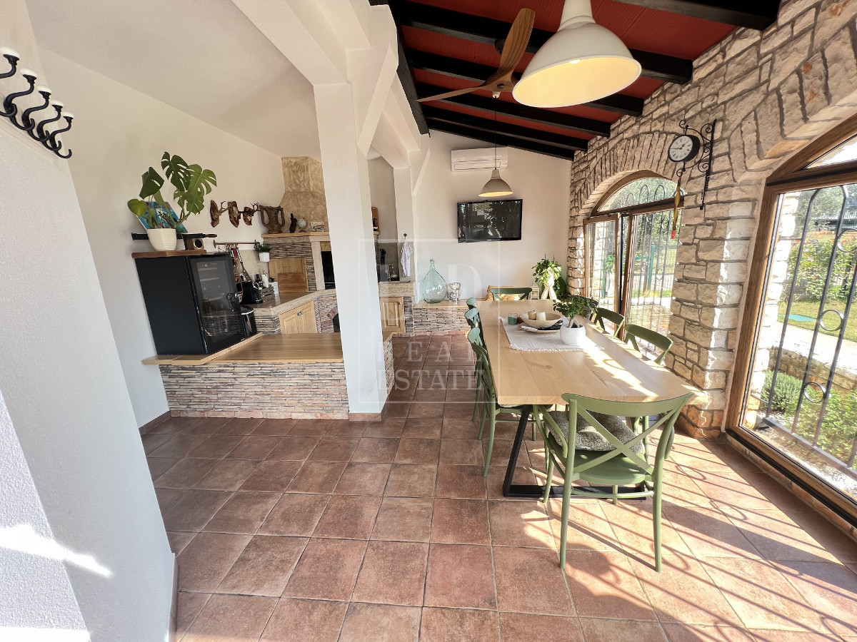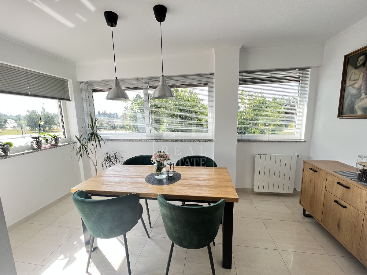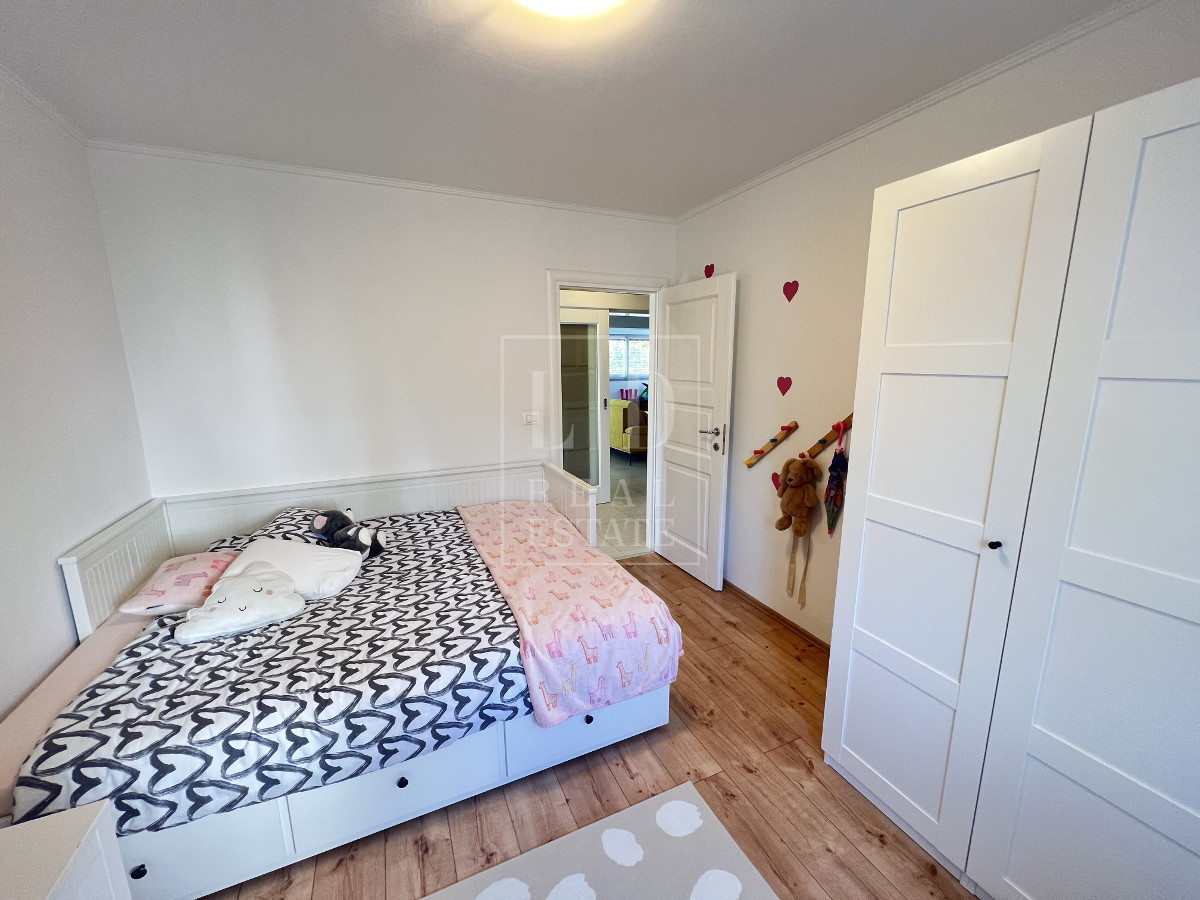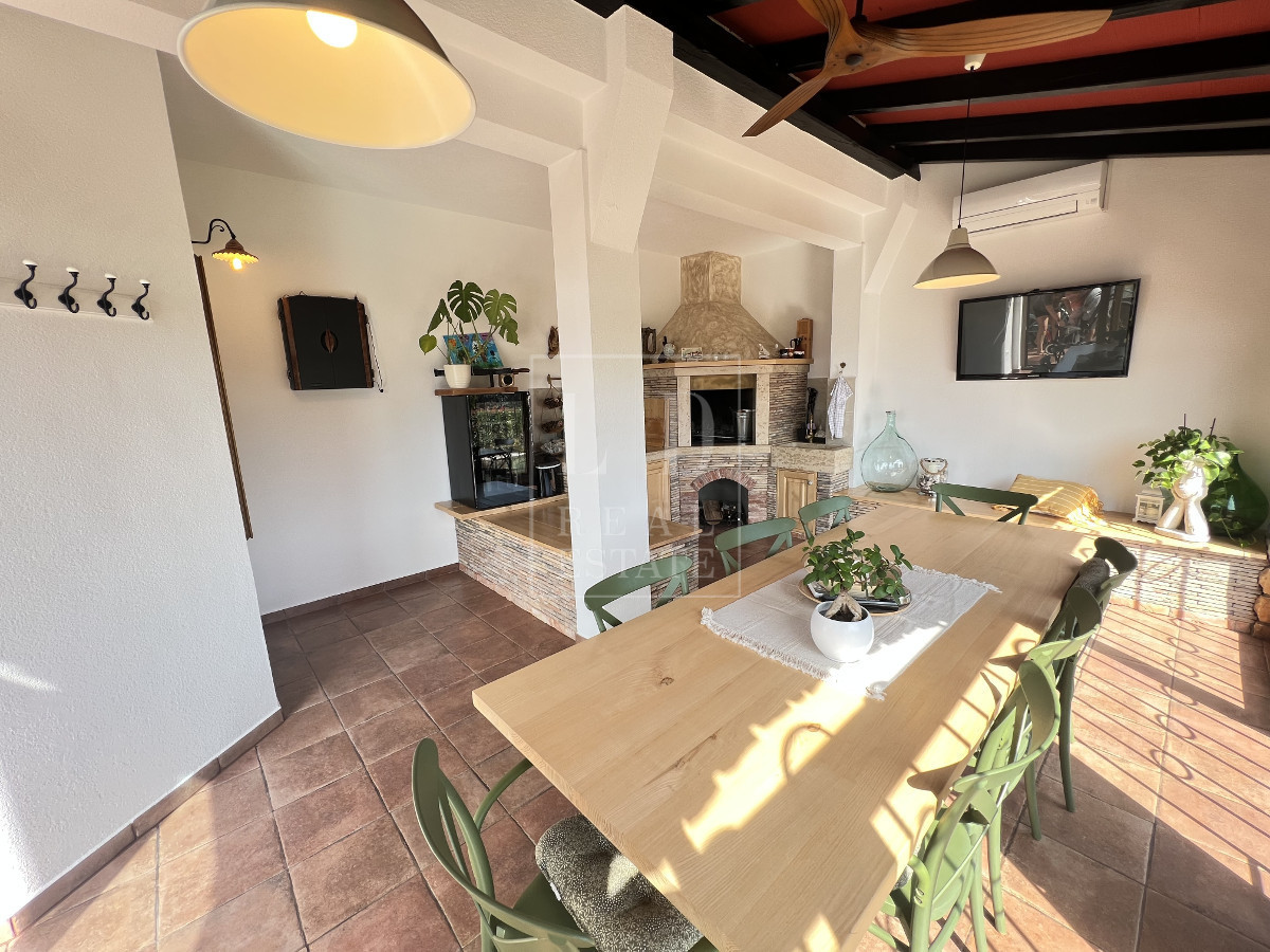 In vendita un appartamento completamente arredato e decorato situato in una buona posizione a 500-600 metri dal mare e da una spiaggia meravigliosa. L'appartamento è composto da ingresso, 2 camere da letto, un bagno, un guardaroba che può essere una 3° camera da letto, un'ampia cucina con sala da pranzo collegata con il soggiorno. Il soggiorno e collegato con una terrazza chiusa. All'ingresso dell'appartamento si trova una taverna di 26 mq, splendidamente arredata, che contiene una cucina con camino e un grande tavolo per circa 10 persone. La taverna è dotata di aria condizionata ed è utilizzabile sia d'estate che d'inverno. L'appartamento dispone di un posto auto in un parcheggio recintato e di un bellissimo giardino paesaggistico di 112 m2. Il giardino è dotato di impianto di irrigazione ed è circondato da una siepe.