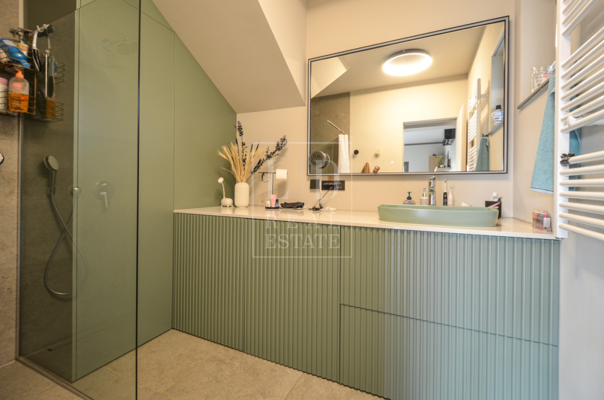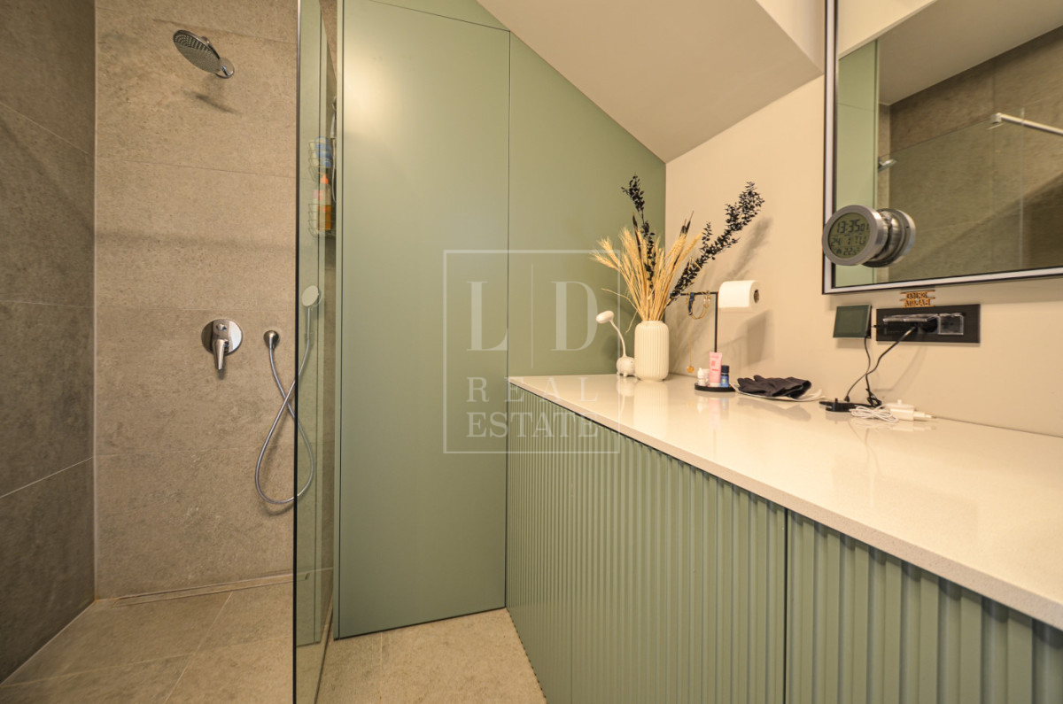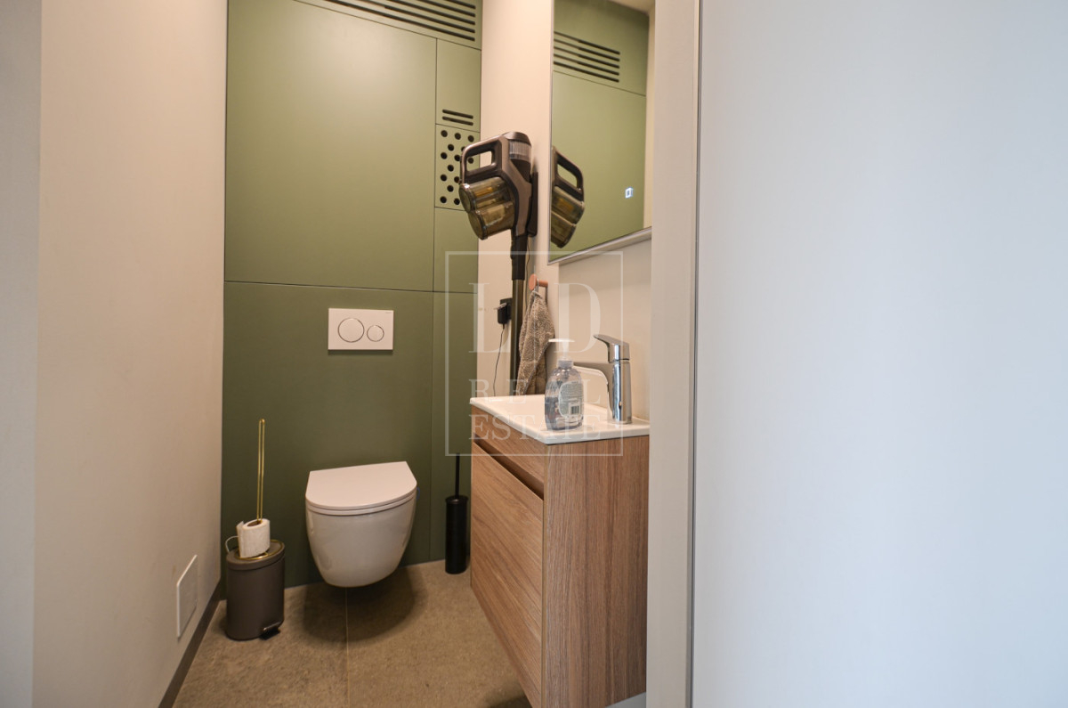 L'appartamento dispone di riscaldamento a pavimento nei bagni e aria condizionata inverter in ogni stanza.