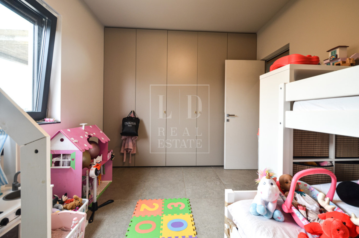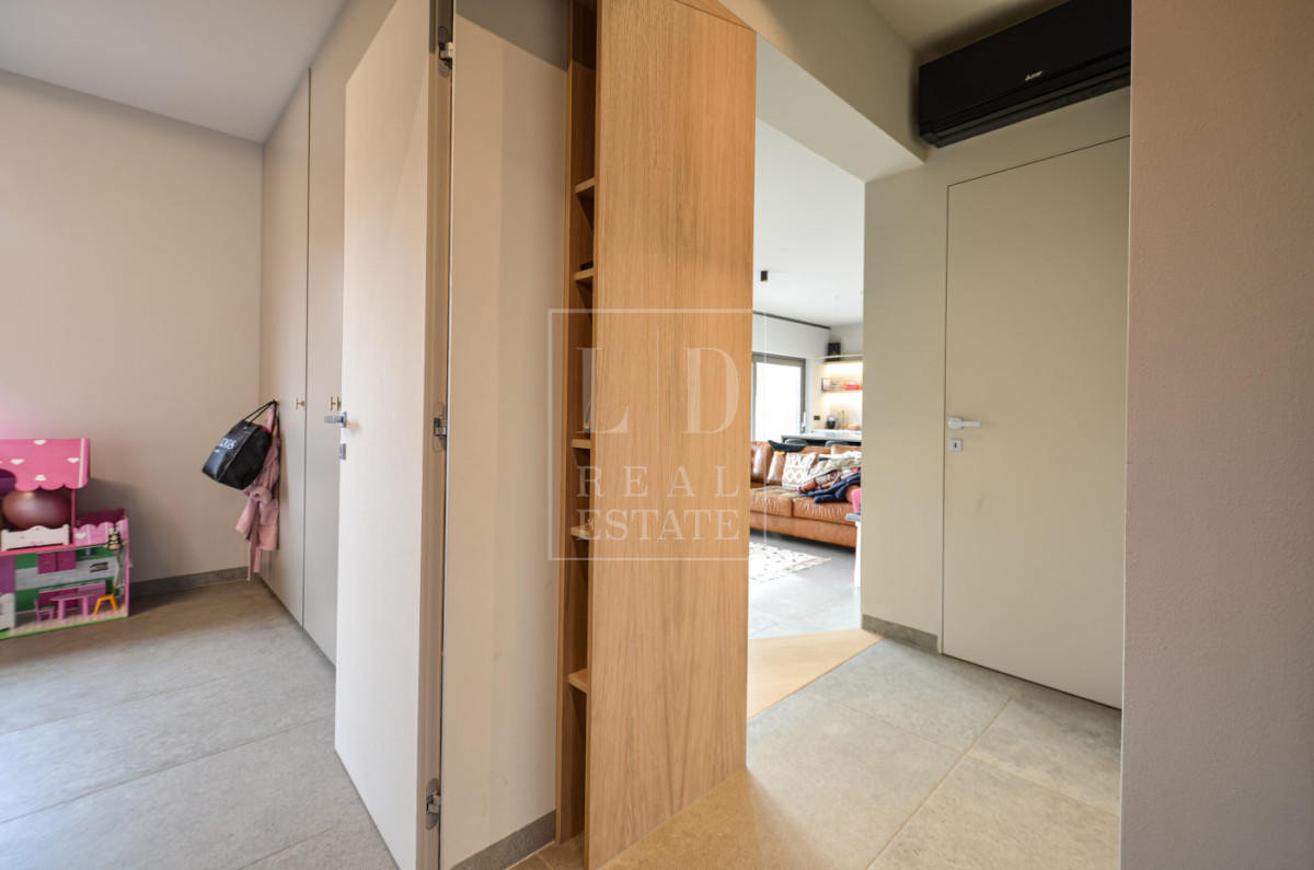 L'appartamento è composto da 2 camere da letto, 2 bagni, cucina/sala da pranzo, soggiorno e una terrazza coperta di 18 m2 collegata a 2 posti auto e prato.